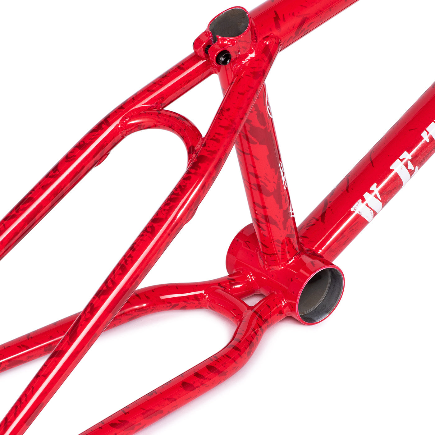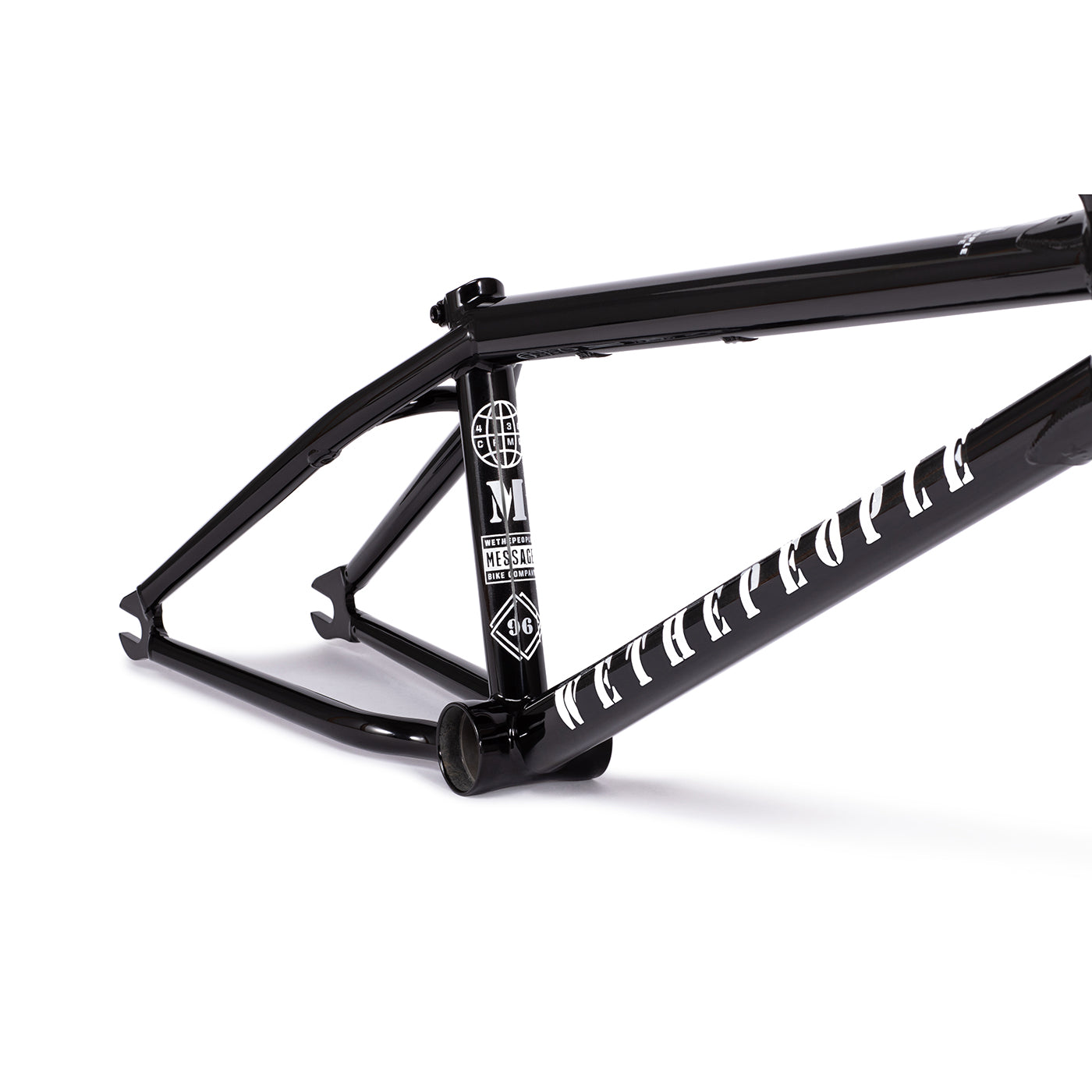 The Wethepeople Message Frame is a technical park setup for riders who need strength, precision, and durability. It features a lower standover height, fast geometry, and peg-compatible dropouts. The frame is compatible with dual cable brake hardware (hardware not included). Made from butted Japanese seamless 4130 CrMo tubing with CNC-machined bottom bracket and head tube, the frame offers stiffness, smooth handling. The wider rear triangle allows 2.4" tire clearance.