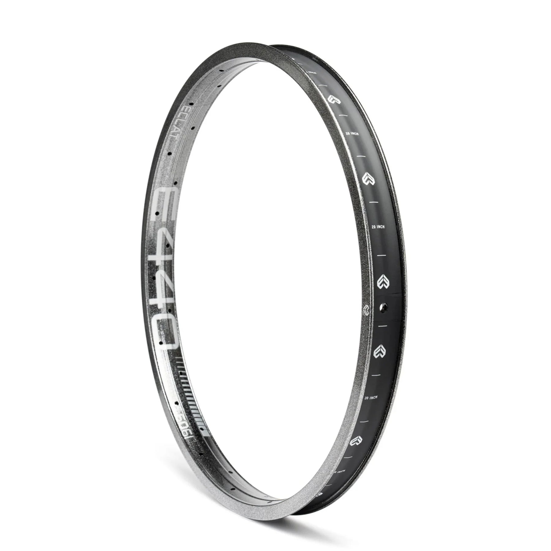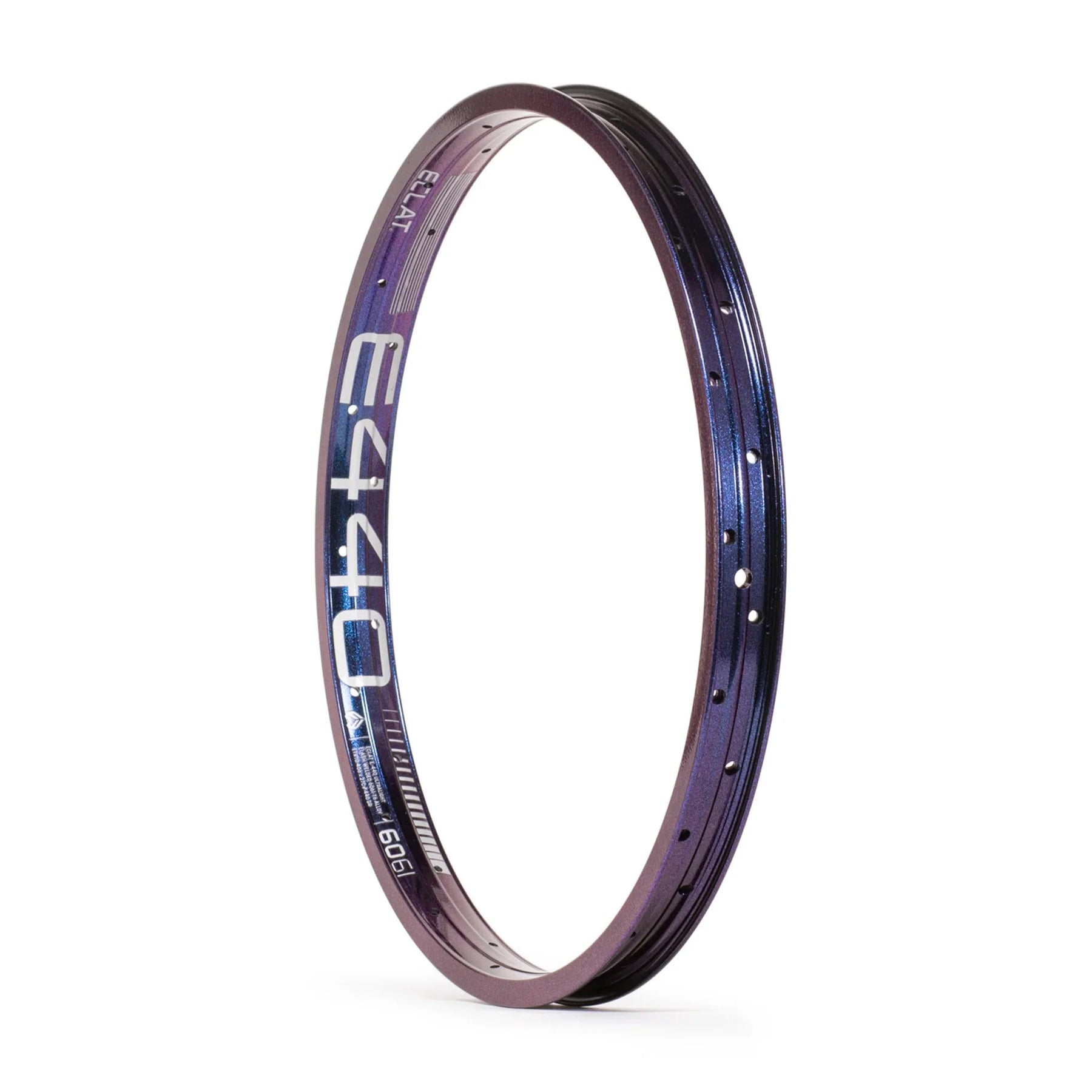 The E440 BMX Rim offers a balance of lightweight performance and durability. Made from 6061-T6 alloy with flash-welded construction, the rim weighs 440 g and features a strong double-wall design, thicker sidewalls for dent resistance, and a slightly taller profile for added rigidity while maintaining straight sides for brake use.