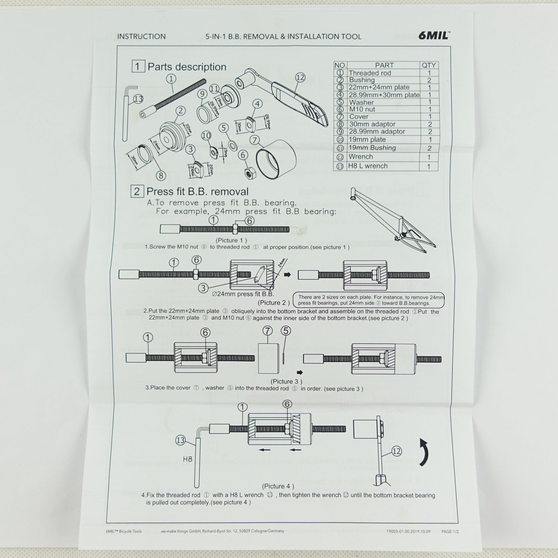 Durable, precise, and built for everyday use – the 6MIL BT-01 ensures quick and safe bottom bracket installation and removal for any BMX or press-fit setup.