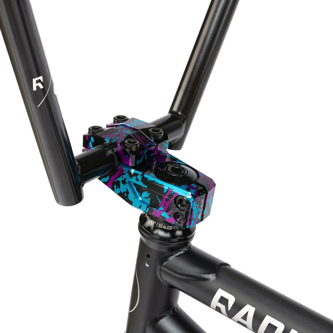 Equipped with a SALTPLUS VERTEX Freecoaster and RADIO’s own CNC machined AXIS stem and AXIS guard sprocket, our PRO level machine is a piece of art. The Comrad comes with 4pc bars, SALTPLUS Nylon hub guards and a beautiful paint finish with custom Splatter parts making it perfect for the technical street rider looking for a masterpiece of a bike with no limitations.